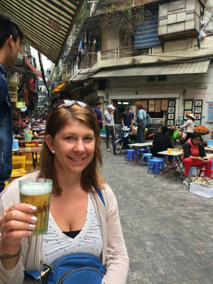 Enjoying bia hoi on the street after successfully thwarting the scam