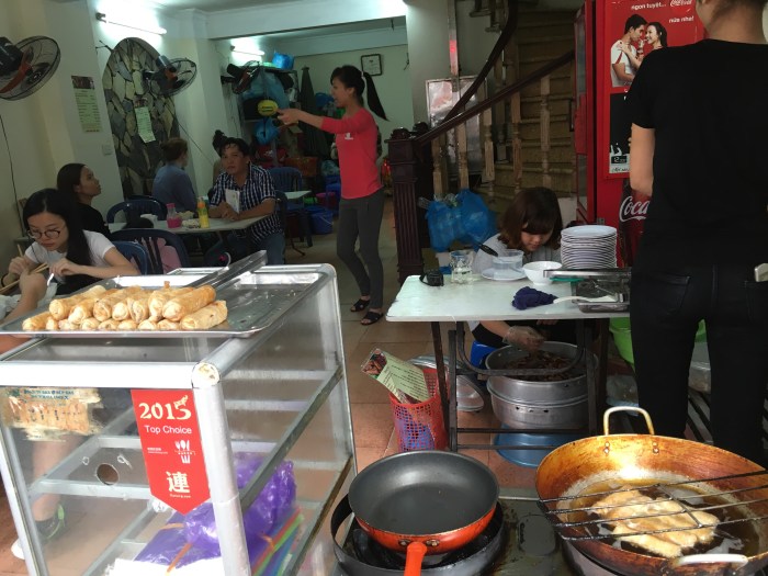 So Hanoi is all about the food. Street food in particular. You may have figured this out already, but I’m kinda obsessed w Vietnamese street food so I was really looking forward to trying it out. Our LP travel guide, in addition to normal resto recommendations, also included a listing of 10 great street food stops in the city, each one focusing on one specialty (do one thing & do it the best). For anyone who has traveled before relying on guidebooks, you know that can be a great source, oftentimes better than hotel concierge recommendations as those oftentimes involve kickbacks or more tourist-friendly sites that sacrifice local food flair, for local dining options. We had enjoyed great success relying on it to-date, so we thought we’d give it a whirl & do our own personal street food tour of the Hanoi Old Quarter as we wander through its winding streets over the next 4 days.