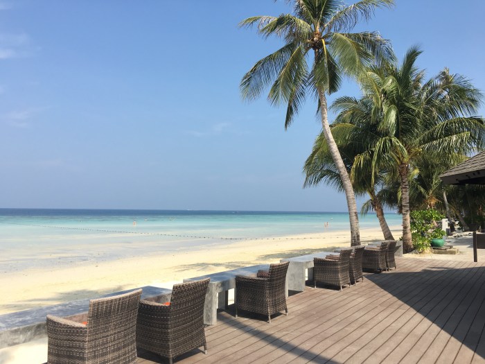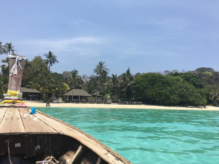 We were one of many people leaving puritanical Railay for Phi Phi as it is apparently the Mecca of Southern Thailand (beyond Phuket), made famous by a Leo Dicaprio movie, “The Beach”, filmed there some years ago. We weren’t taking a day trip to “The Beach” with everyone else nor did we feel we needed to see the main port town of Tonsai turn into a crazy club town at night, so upon recommendation from other travelers, we opted for the less-populated far NE side of the island. We splurged a bit on the hotel as we were looking for total relaxation after some busy days in Vietnam & the somewhat disappointing Railay. We got exactly what we hoped for, in addition to amazing food & it was lovely.