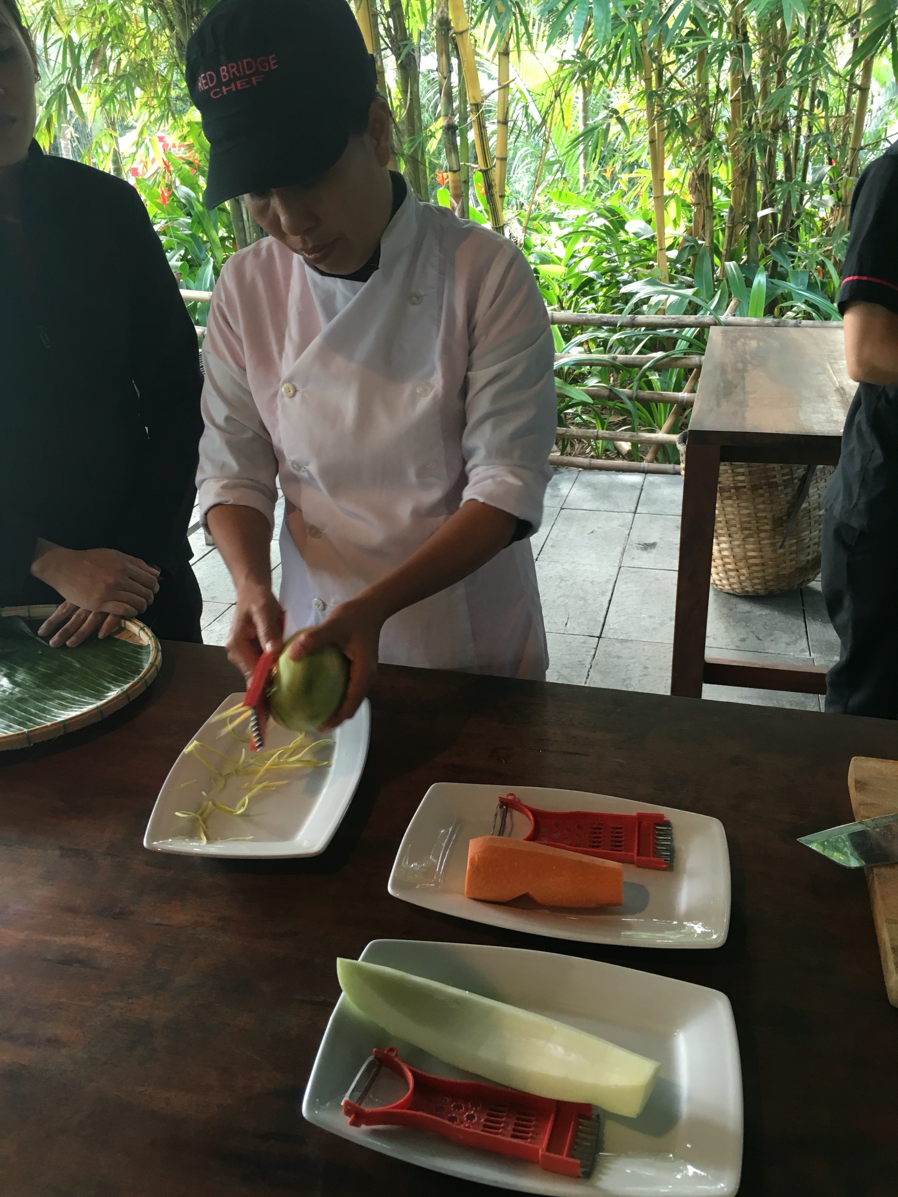 The Red Bridge cooking school was co-located w one of the best restos in the city out of town & accessible by both road & boat. We took a boat after our guide toured us through the local market.