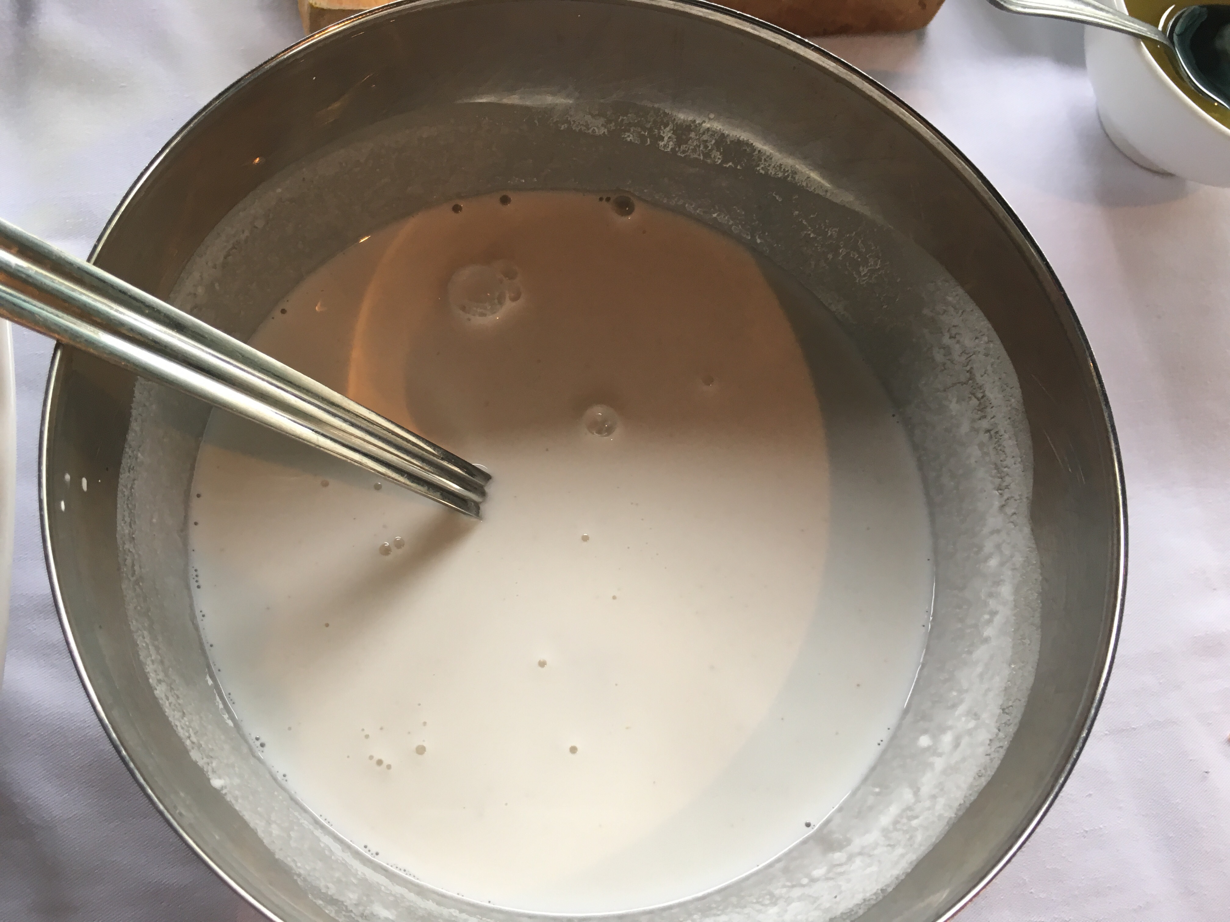 It involves this contraption of a cotton tee held atop a boiling pot of water by elastic w a very important slight gap in the side (releases steam & allows you to wet the flat wooden utensil to slide under the paper once its’s steamed there for 65 seconds… that’s the most difficult part)