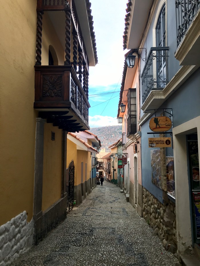 By the time I hit La Paz, I was ready for a big city. I’m a Chicago girl & I LOVE me a big city so I was super excited to wander, explore, chill in cafes & enjoy some good food. I was most excited about having no plan. Between wine tours, sand surfing, vomit-inducing flights, Machu Picchu, Rainbow Mountain & Isla del Sol… I’ve kept awfully busy touring my time away. So having nothing on the agenda was exactly what I needed. La Paz delivered in full. It’s stunningly located in a sprawling valley surrounded by mountains & features a charming old city feel with new city spoils.