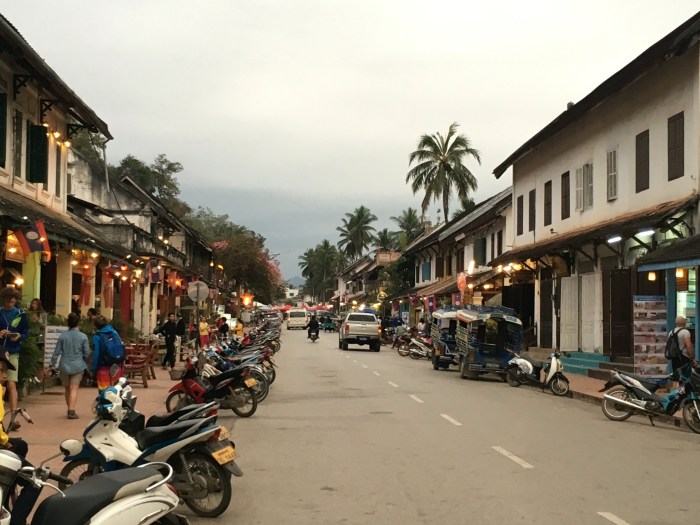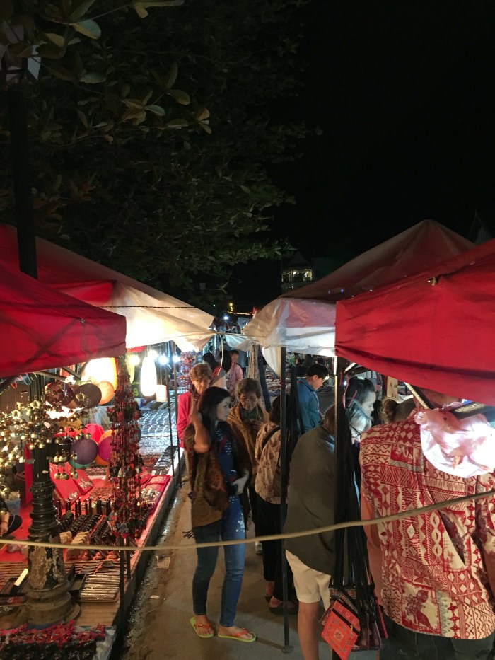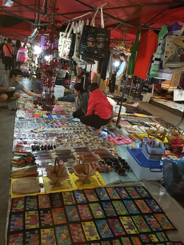 That night we hit the local night market along the main drag, a short walk from our hotel. We found it was much more quaint and authentic than the Thai markets and the goods appeared unique and locally made. For the first time, we found a LOT of items that piqued our interest, inspiring a lot of gift ideas, so we looked into shipping goods back home because as much as we love you, we weren’t going to carry them on our backs. If it weren’t for the totally unreliable Laos post system, many of you would be blessed with absolutely amazing local Lao gifts, but you’re just going to have to take my word for it.