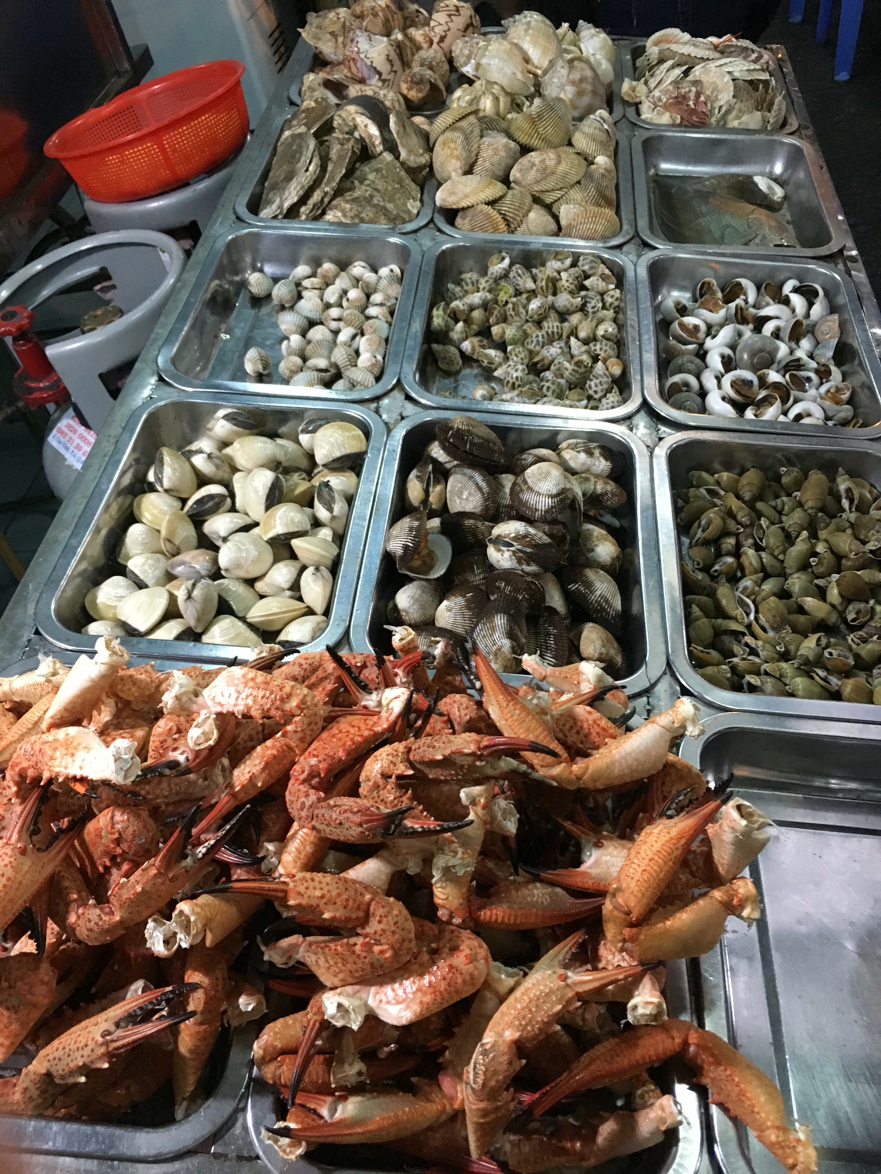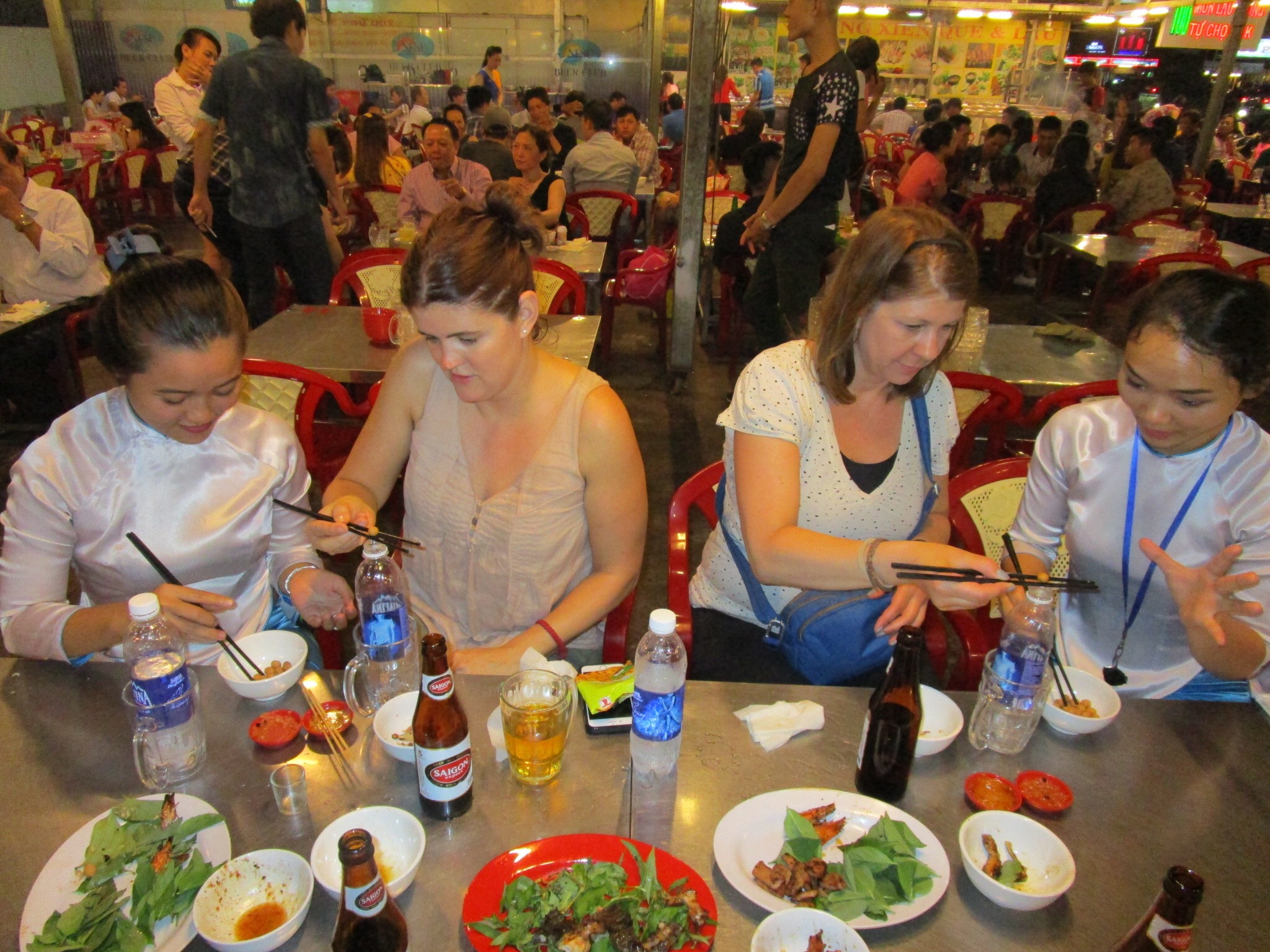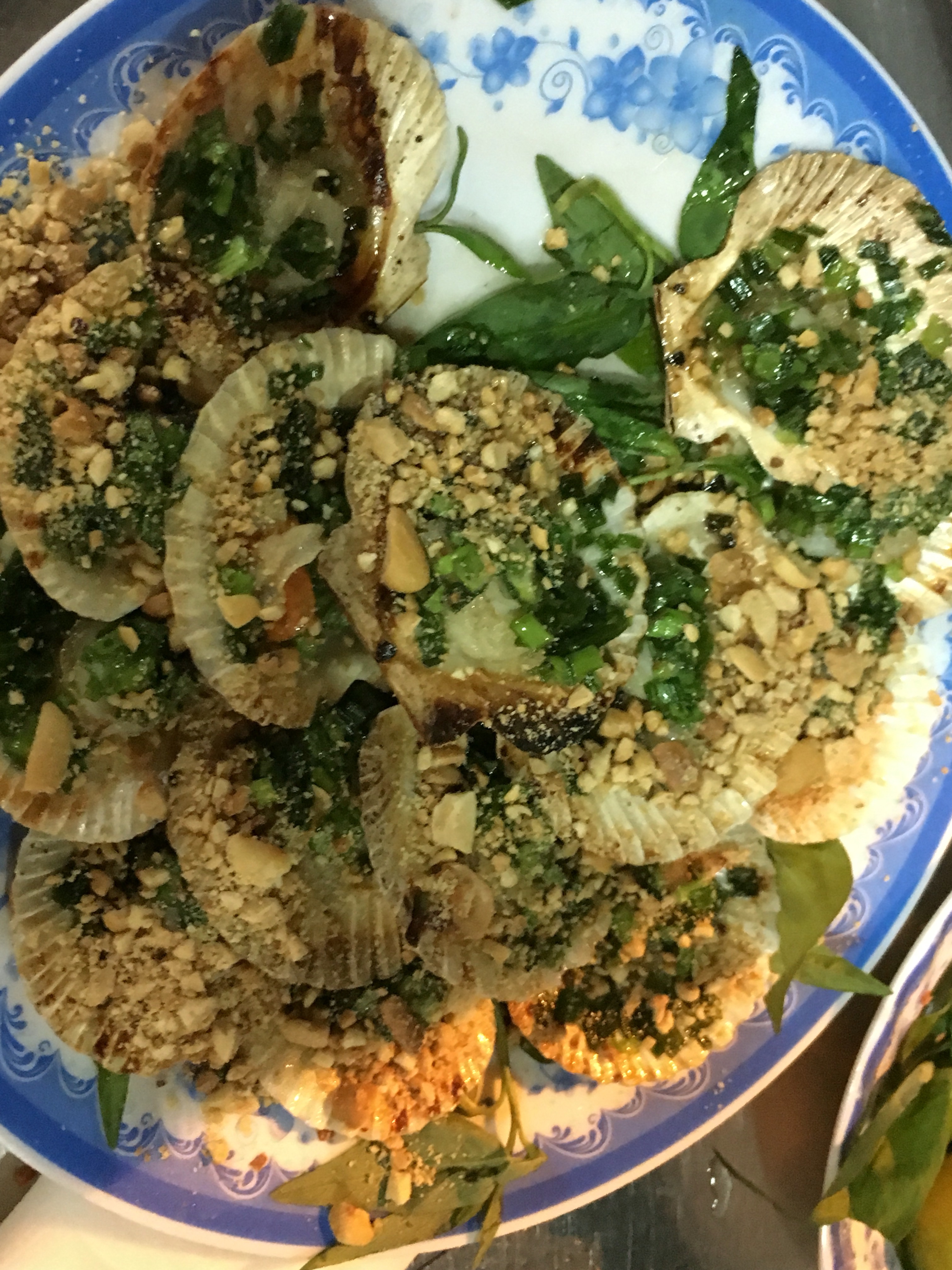 Stop 3 – Long Vi Dung for (1) nom bo kho, beef jerky salad, green papaya, peanut, basil & dipping sauce; (2) banh bot loc, tapioca dumpling so transparent w shrimp, pork & black mushroom & dip in same sauce (4 parts water, 1 part fish sauce, vinegar & sugar). We are only 1 hour in & we’ve had 4 dishes. Belly is bursting but must push on.