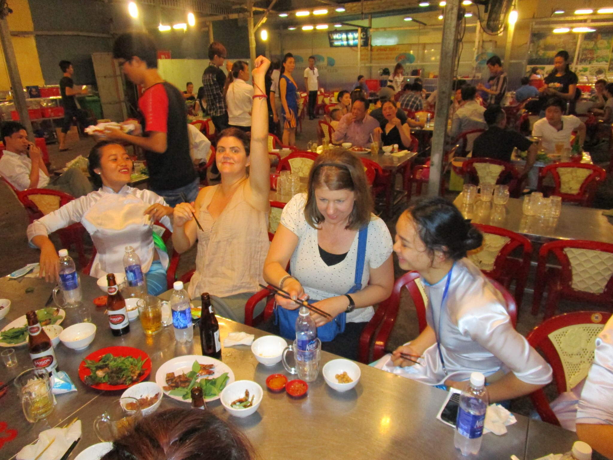 Stop 8 – Banh mi sandwich w fried pork, pate, veggies & a shot of rice wine to wash the food down; also had ca phi trung or egg coffee – yolk on top; Vietnamese say bc they have a bitter life, they like to sweeten everything; used to drink w condensed milk but replaced w egg; seriously delicious!!! I had to come back to the same place to get another one the very next day. Money gave me her email address to stay in touch but I told her first things first, I needed the egg coffee recipe.