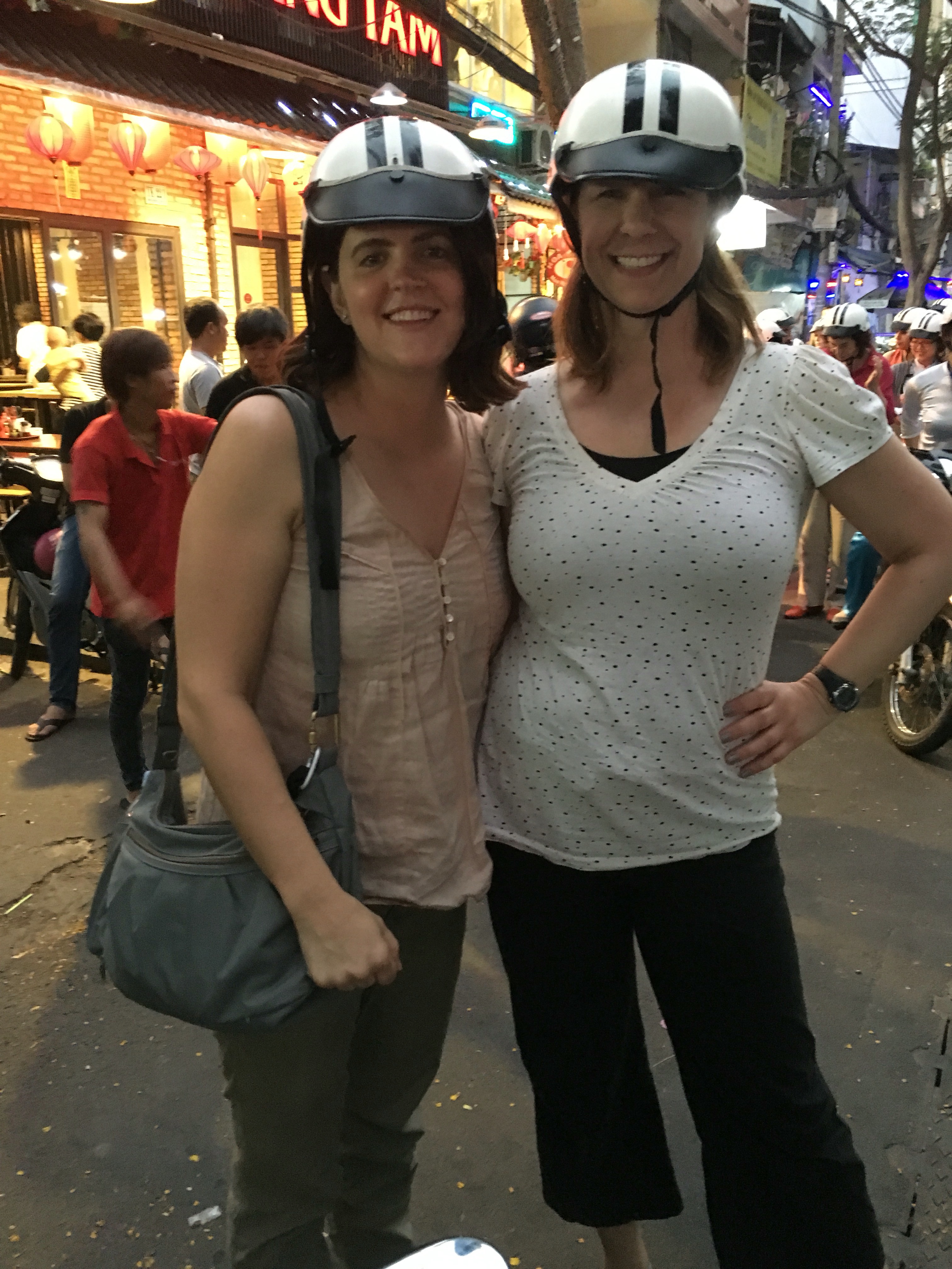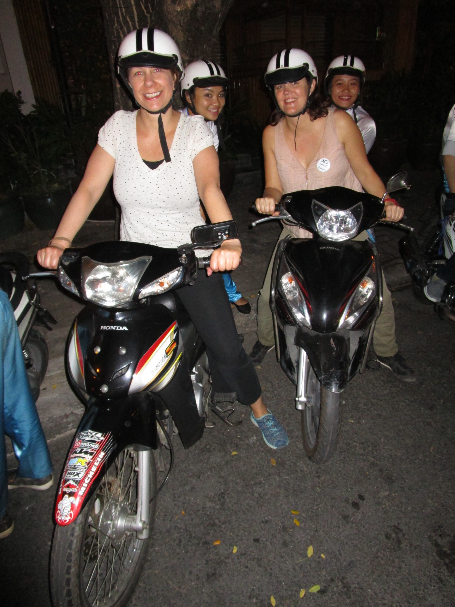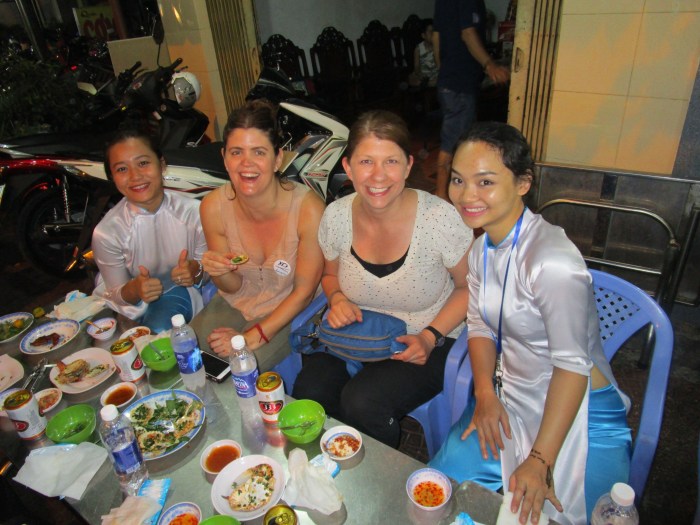 Because we really like to eat, are obsessed w street food & loved our Saigon motorbike food tour, did you really think we weren’t going to do one in Hanoi too? Similar concept as cute young women drivers are paired w customers but this time there were just 4 of us, including a very nice young Russian couple who lived in Kuala & was visiting for the weekend (I managed to resist asking them if they’ve visited Nha Trang bc I didn’t want to profile them but it was a struggle all night). The tour was a bit more informal as the girls didn’t wear traditional dress & only the chick in charge, Nga or “Money”, came in & sat w us at the street food restos to explain what we’re eating & how to eat it. Thankfully I was paired w her on the motorbike so we had great convos coming & going as she knew exactly what we ate & discussed & I really got to know her as well as you can. I felt a bit guilty as Amy didn’t have that same luck but despite that, we both had a really great time. I was a little curious, since we had been traveling in Vietnam for over 2.5 weeks, whether we’d know all of the dishes or still be surprised. I was thrilled as Money introduced us to so many new dishes which just speaks to the massive variety in Vietnamese cuisine as this tour varied significantly from the Saigon one.