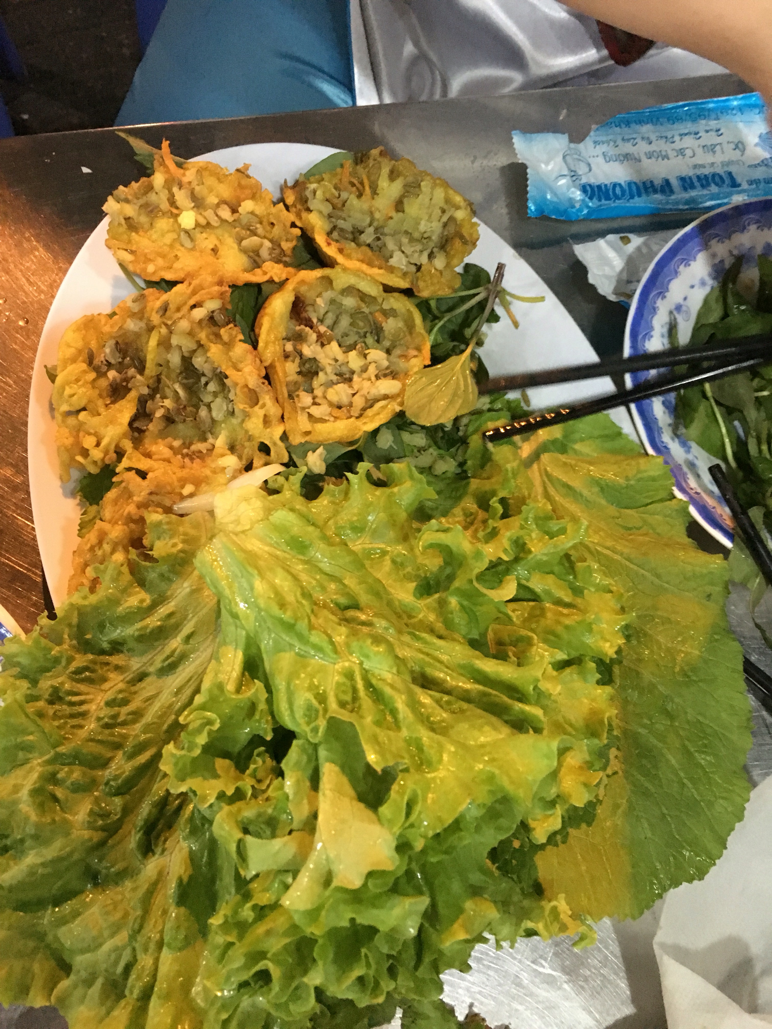 Stop 6 – Pho chien trung, egg fried pho at Trung Ran; w beef, an amazing sauce & topped w greens. Again, no idea that fried pho existed but need to find this & dry pho in Chicago. Also had rolled pho, pho cuon – fresh rice paper, beef & herbs (very similar to Southern Vietnamese fresh spring roll but definitely not called that… they like to highlight the differences between S & N Vietnam cuisine… Kinda amusing).